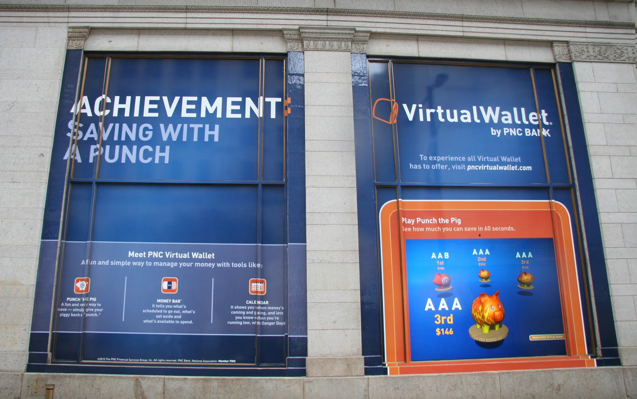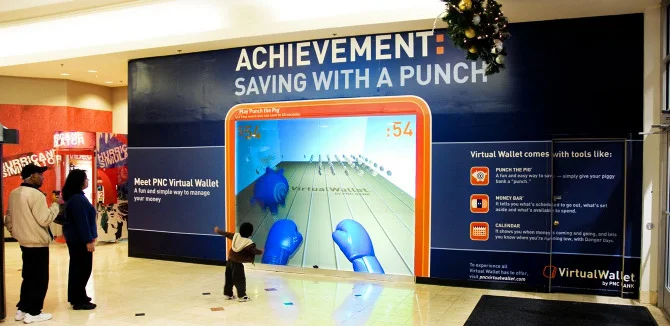 Virtual Wallet is an online checking and savings account created by PNC Bank that offers unique tools, like Money Bar, Calendar, Wish List and Punch the Pig. To promote their flagship product, we created TV spots and placed experiential outdoor in cities around the country.