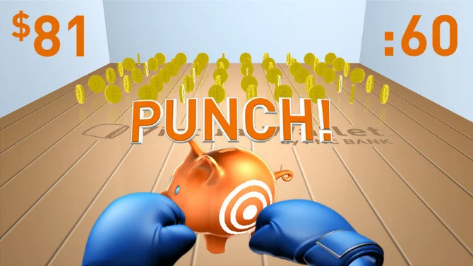 Punch the Pig is a feature that makes saving fun - just punch a virtual piggy bank to transfer money to your savings account. To show it off, we created a gesture-based game that challenged players to see how much they could save in 60 seconds.